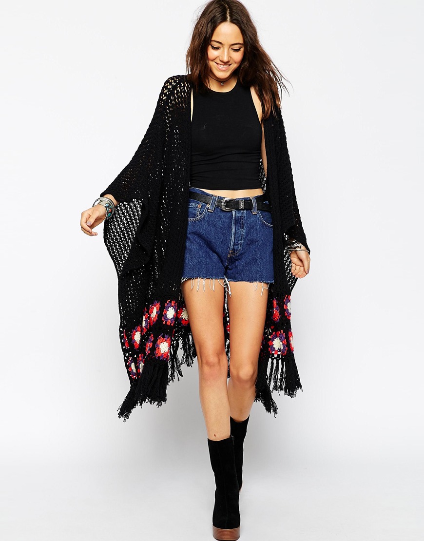 Image 1 of ASOS Premium Cape With Patchwork Crochet Hem and Fringing
