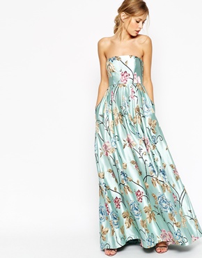 Image 1 of ASOS SALON Premium Beautiful Floral Jacquard Bandeau Maxi Dress