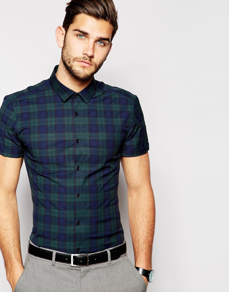 Image 1 of ASOS Skinny Fit Shirt In Check Design With Short Sleeves