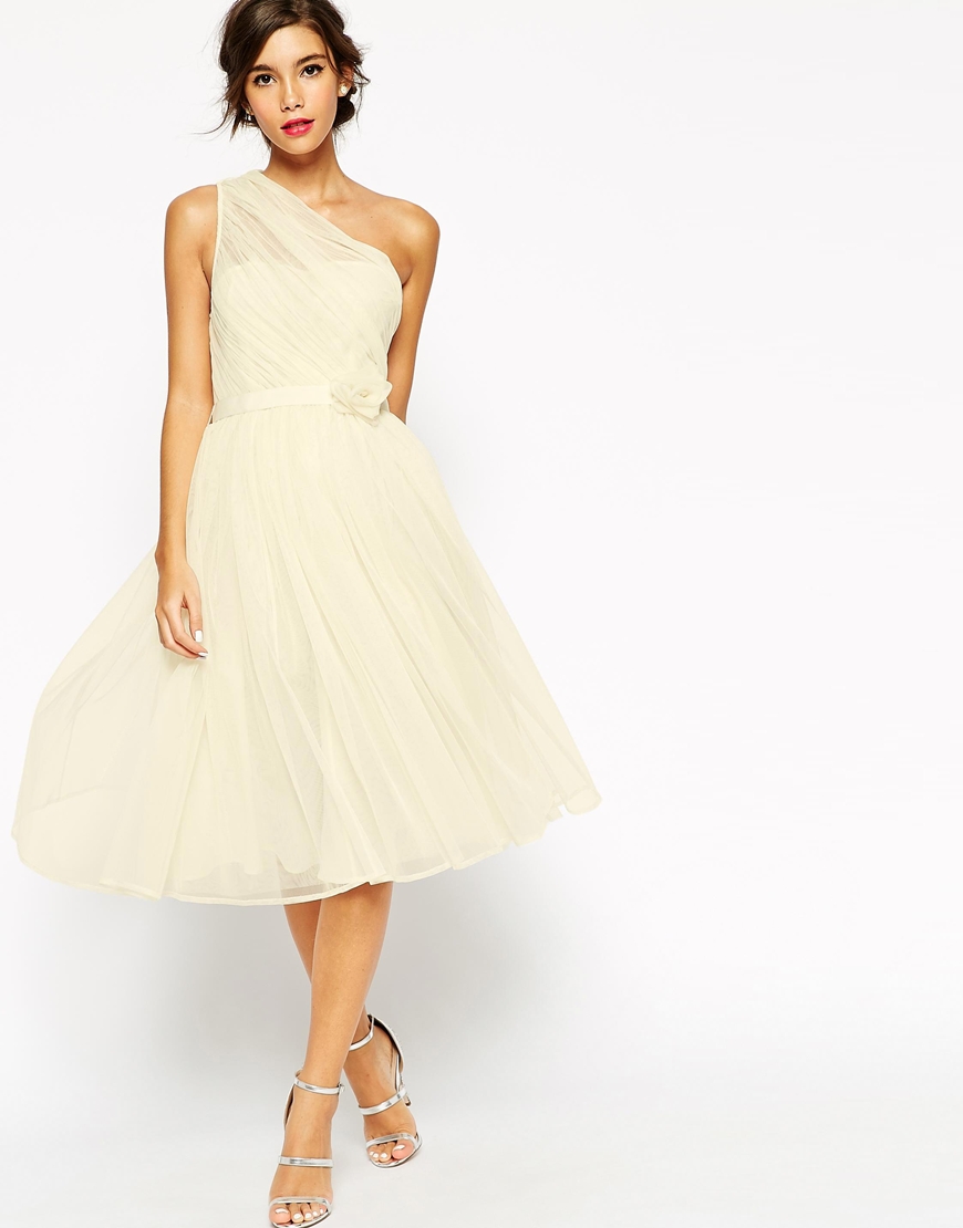 Image 1 of ASOS WEDDING Mesh One Shoulder Corsage Dress