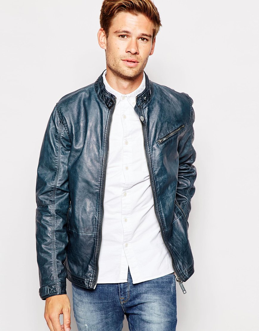 Image 1 of Blend Biker Jacket Faux Leather Vintage Wash