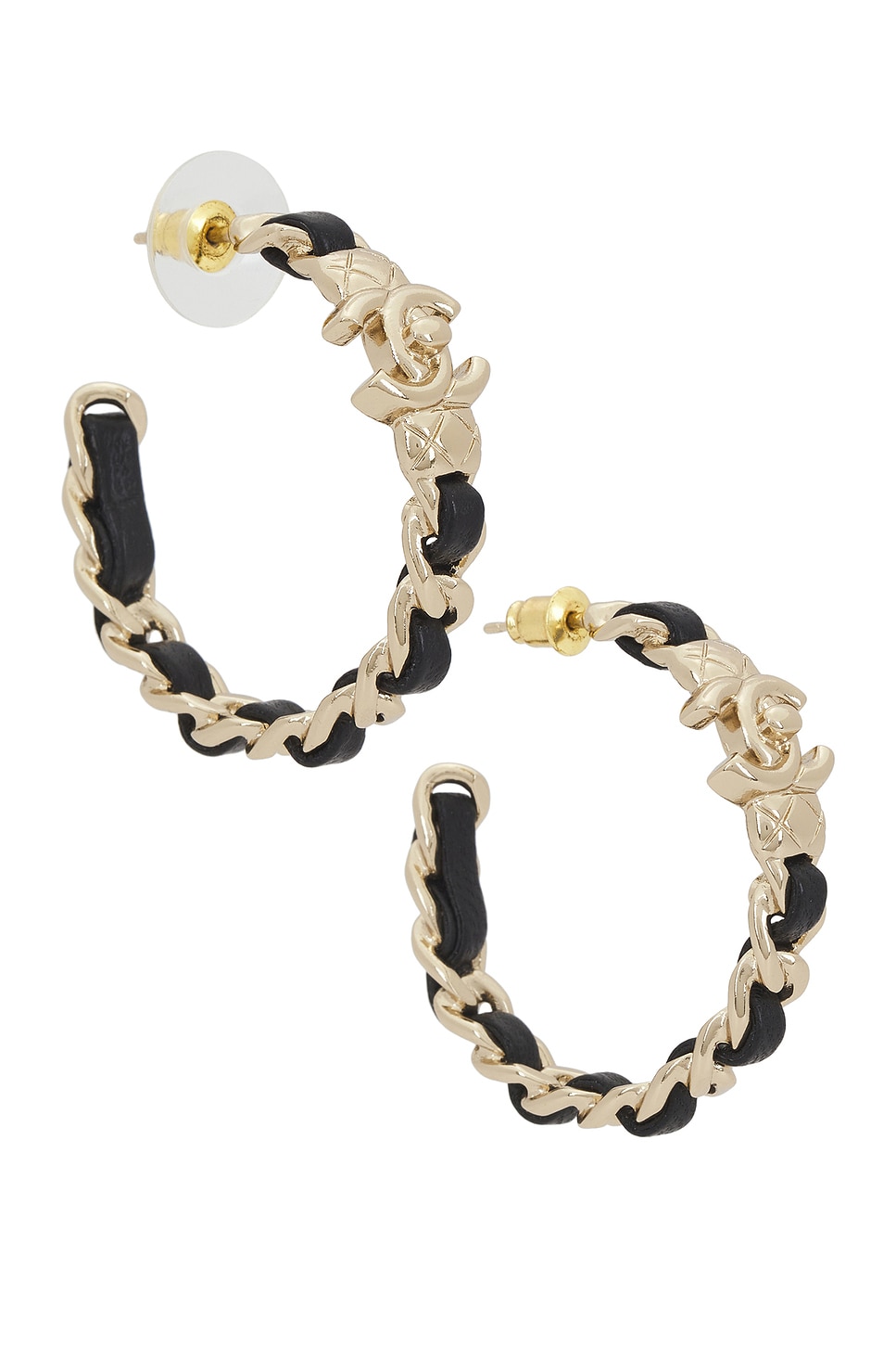 Image 1 of FWRD Renew Chanel Coco Mark Leather Hoop Earrings in Gold