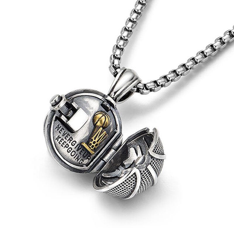 (image for) Openable Mens Basketabll Pendant Necklace in Sterling Silver