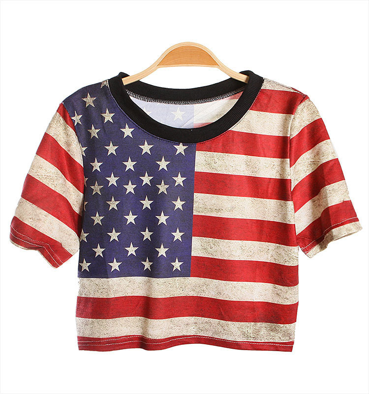 Image of National Flag Print Loose Short T-shirt