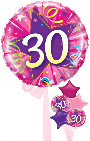 Inflated Num 30 Shining Star Hot Pink Balloons