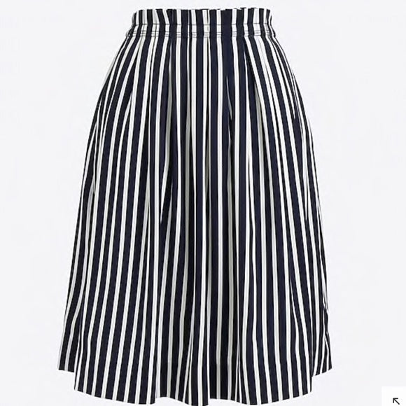 J. Crew Black White Stripe Pleated Midi Skirt, Size 8