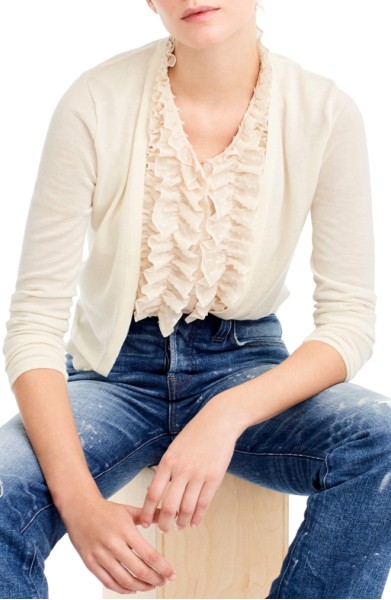 J.Crew Ruffle Underlay Cardigan Sweater