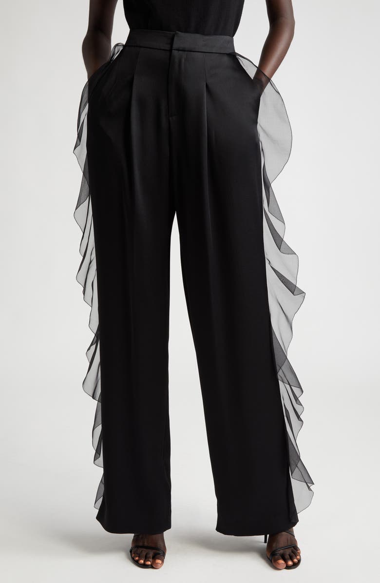 Jason Wu Collection Cascade Ruffle Detail Satin Pants, Main, color, BLACK