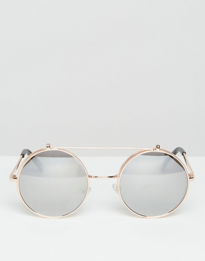 Jeepers Peepers Round Sunglasses in Gold with Mirror Lens