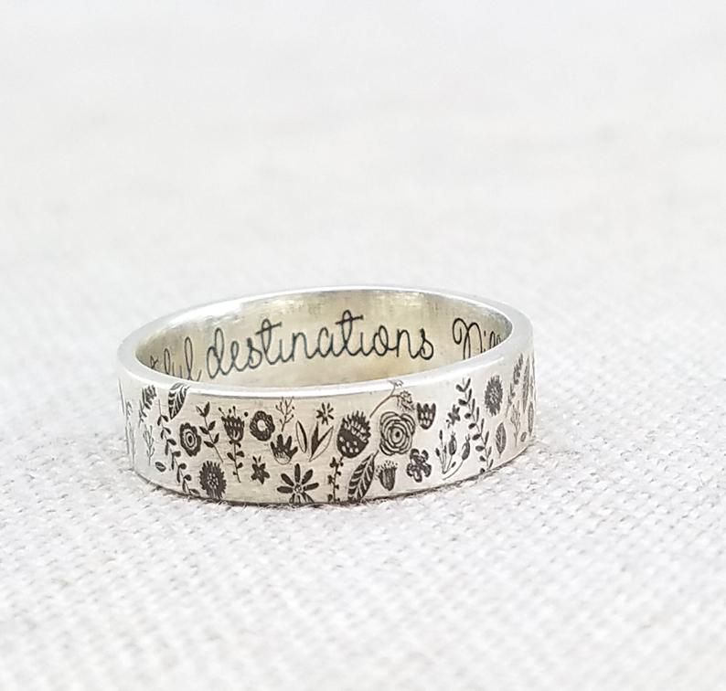 Jewelry - Personalized Floral Ring - Inspirational Silver Ring - Personalized Jewelry - Engraved Ring - Flower Ring - Gardening - Stocking