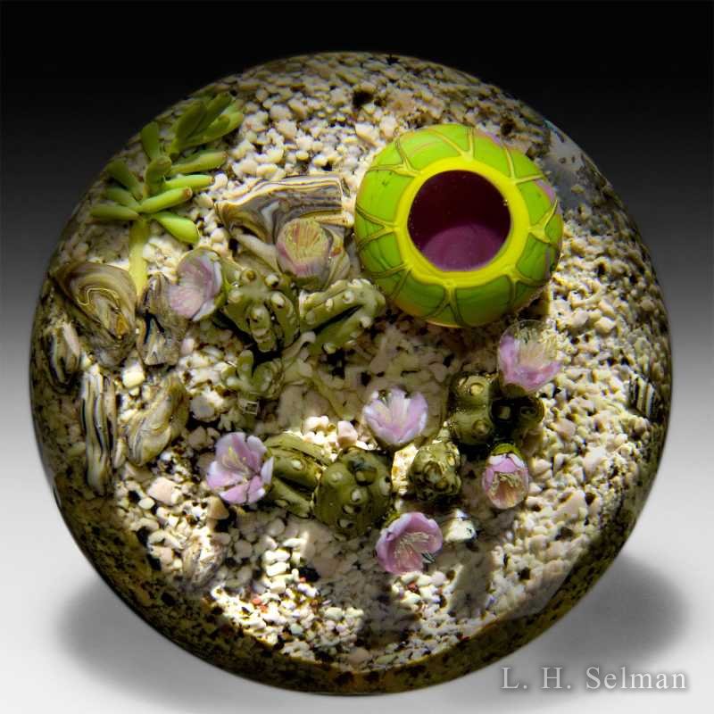 Jim D'Onofrio 1991 'Flowering Cactus' glass paperweight. by Jim D'Onofrio