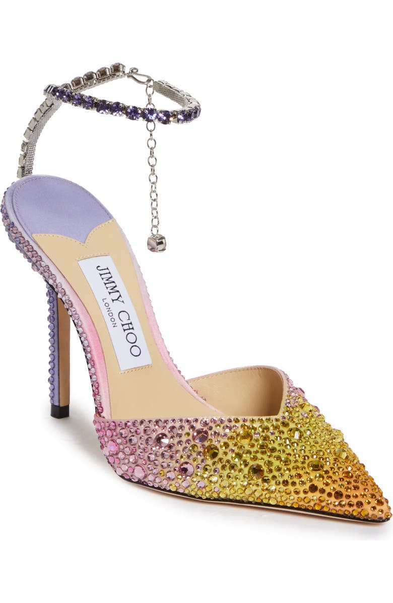 Jimmy Choo Saeda Crystal Ankle Strap Pointed Toe Pump, Main, color, Sunset Mix/ Crystal