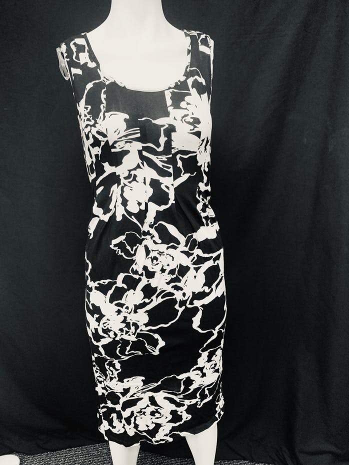 Jones New York Floral Pleated Tank Dress Black and white Floral Casual Dress small