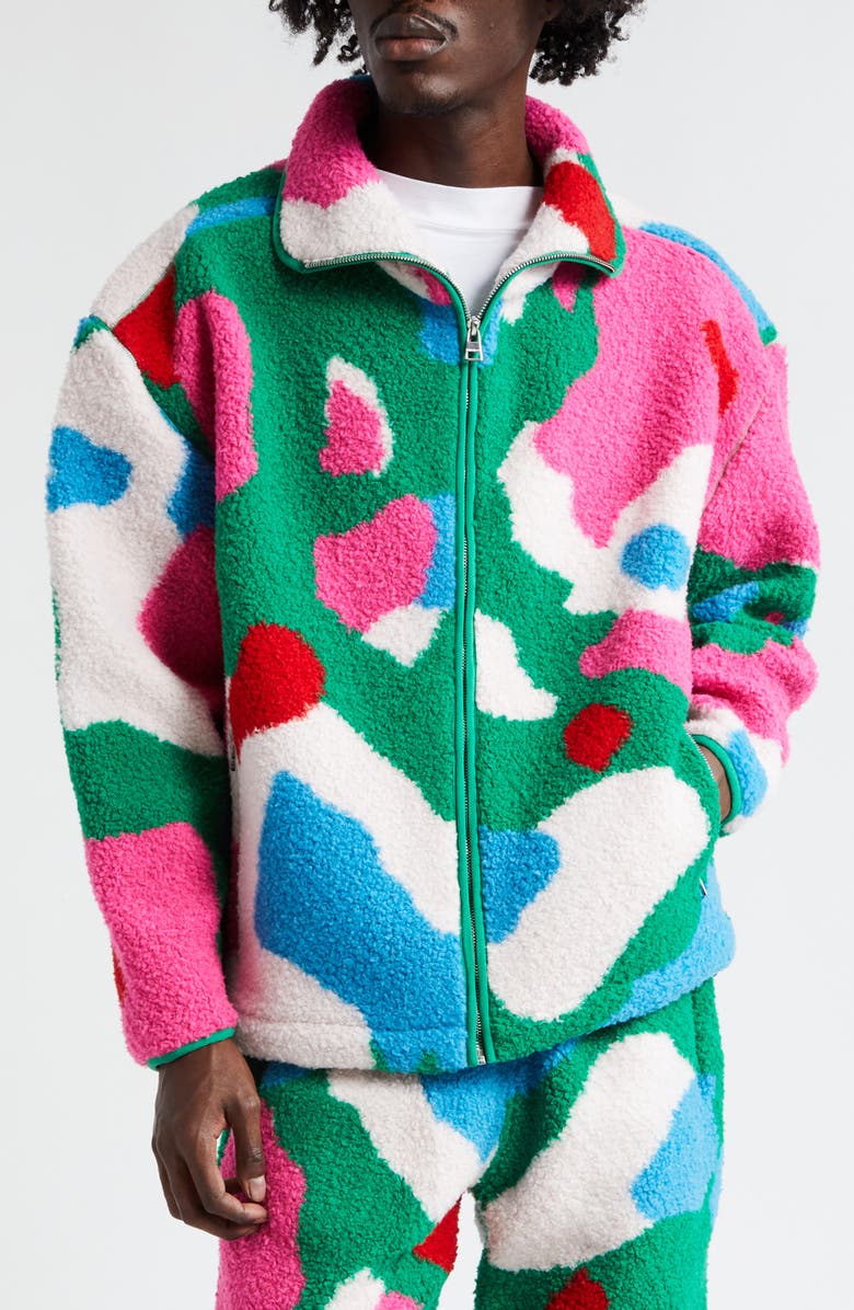 JW Anderson Multicolor Graphic Fleece Jacket, Main, color, Pink/ Multi