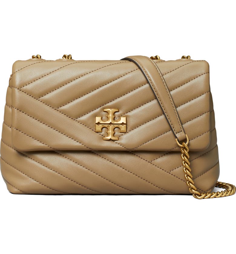 Kira Chevron Small Leather Convertible Shoulder Bag, Main, color, PEBBLESTONE
