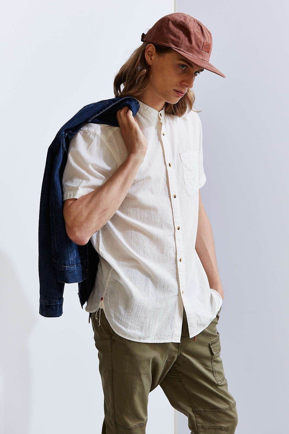 Koto Short-Sleeve Mandarin Collar Button-Down Shirt - Urban Outfitters