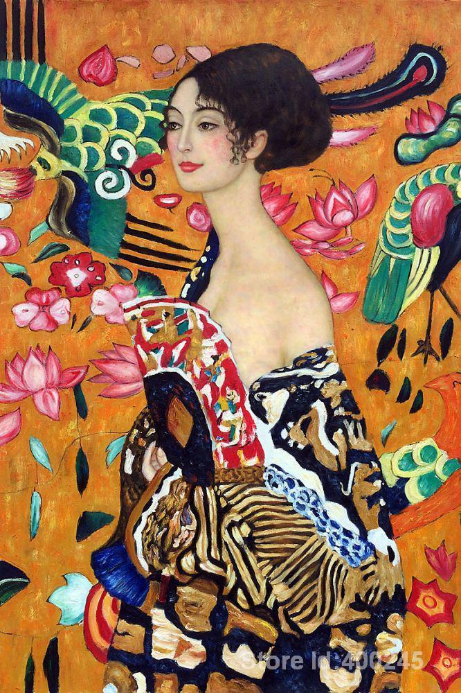 Lady with a fan Gustav Klimt famous art reproductions Oil painting canvas HQ Hand painted