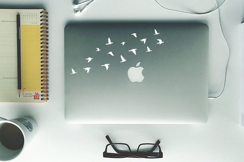 Laptop Decal - Flying Birds | Removable Vinyl Sticker in Black, White, Grey | Flock of Birds Macbook Decor | Mac Book Accessory Accessories