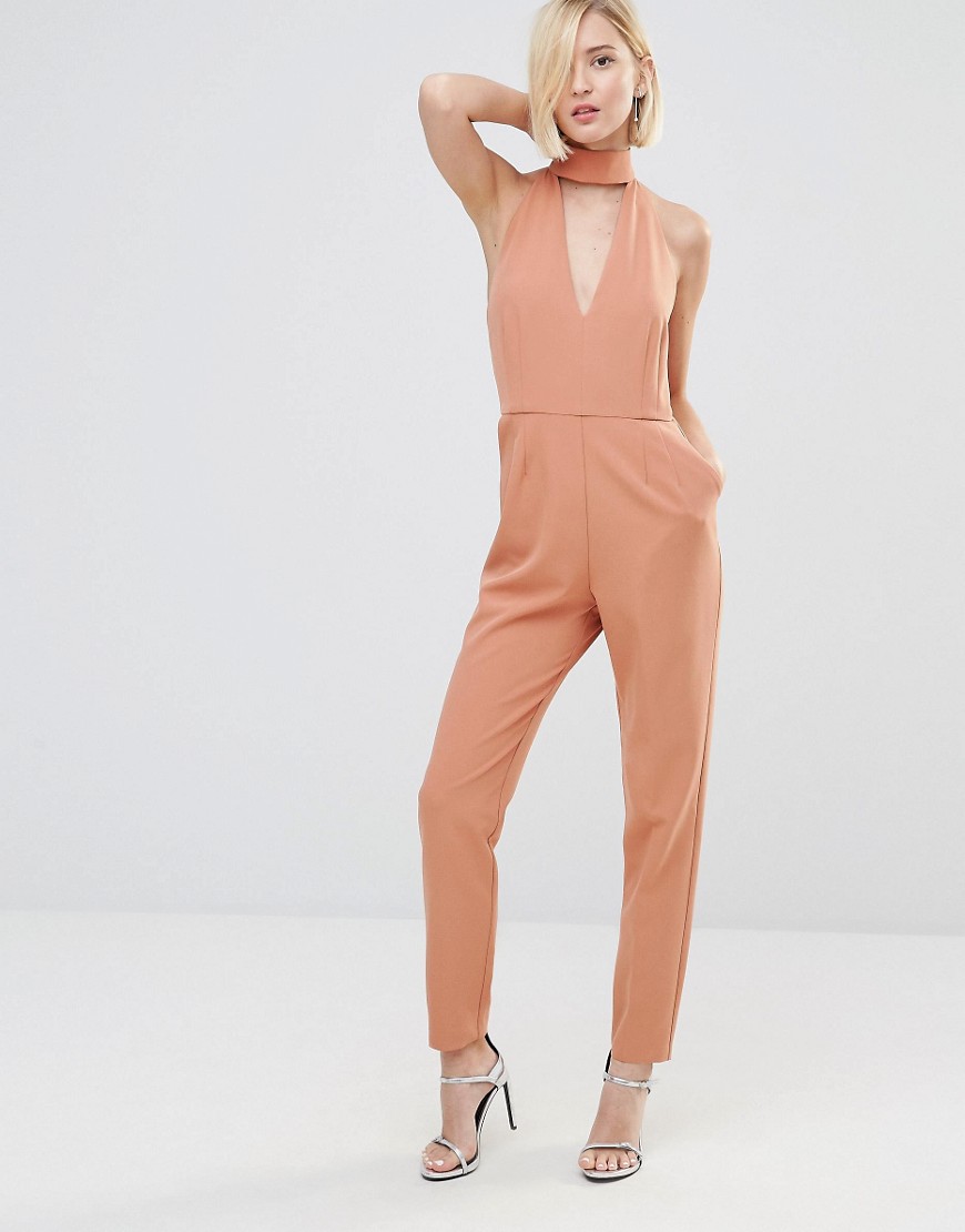 Lavish Alice Keyhole High Neck Deep Plunge Jumpsuit