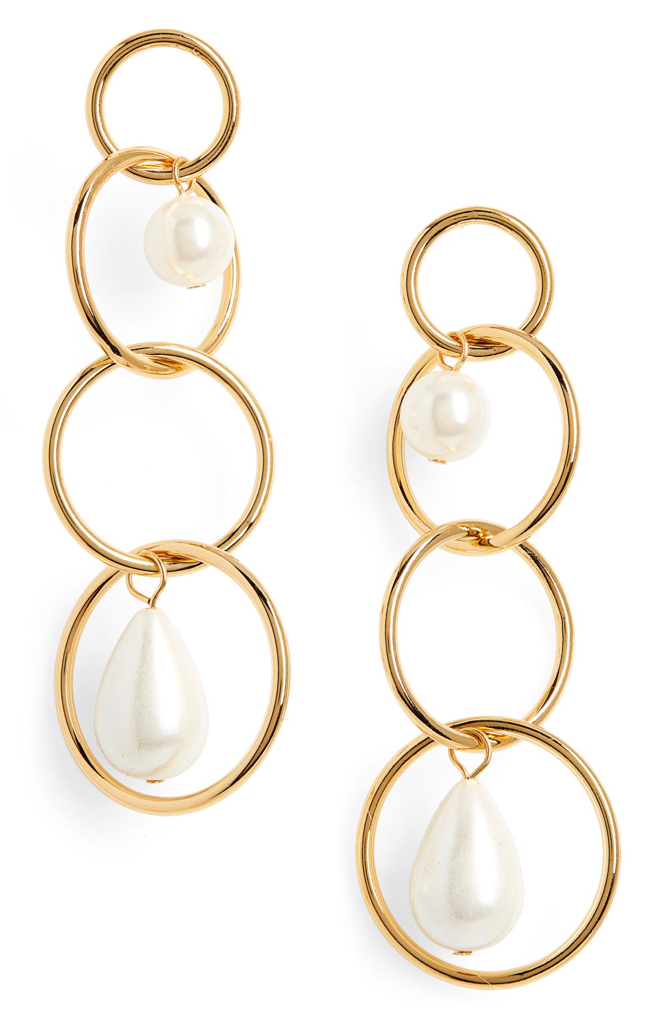 LELE SADOUGHI Teardrop Pearl Linear Drop Earrings, Main, color, IVORY