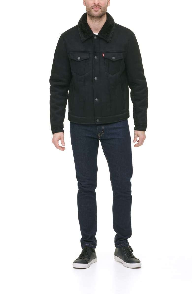 LEVI'S® Faux Shearling Lined Denim Trucker Jacket, Main, color, BLACK/ BLACK
