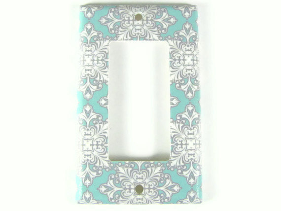 Light Switch Plate Cover Robin's Egg Blue & White Modern Damask - Nursery, Child and Home Decor