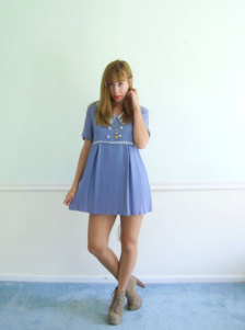 Lilac Blue Peter Pan Collar Mini Babydoll Dress - Vintage 90s - S M Petite