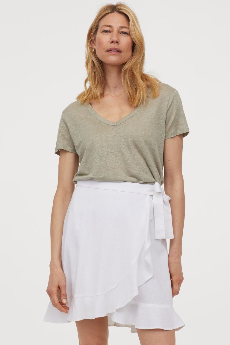 Linen-blend Wrap Skirt - White - Ladies | H&M US 1