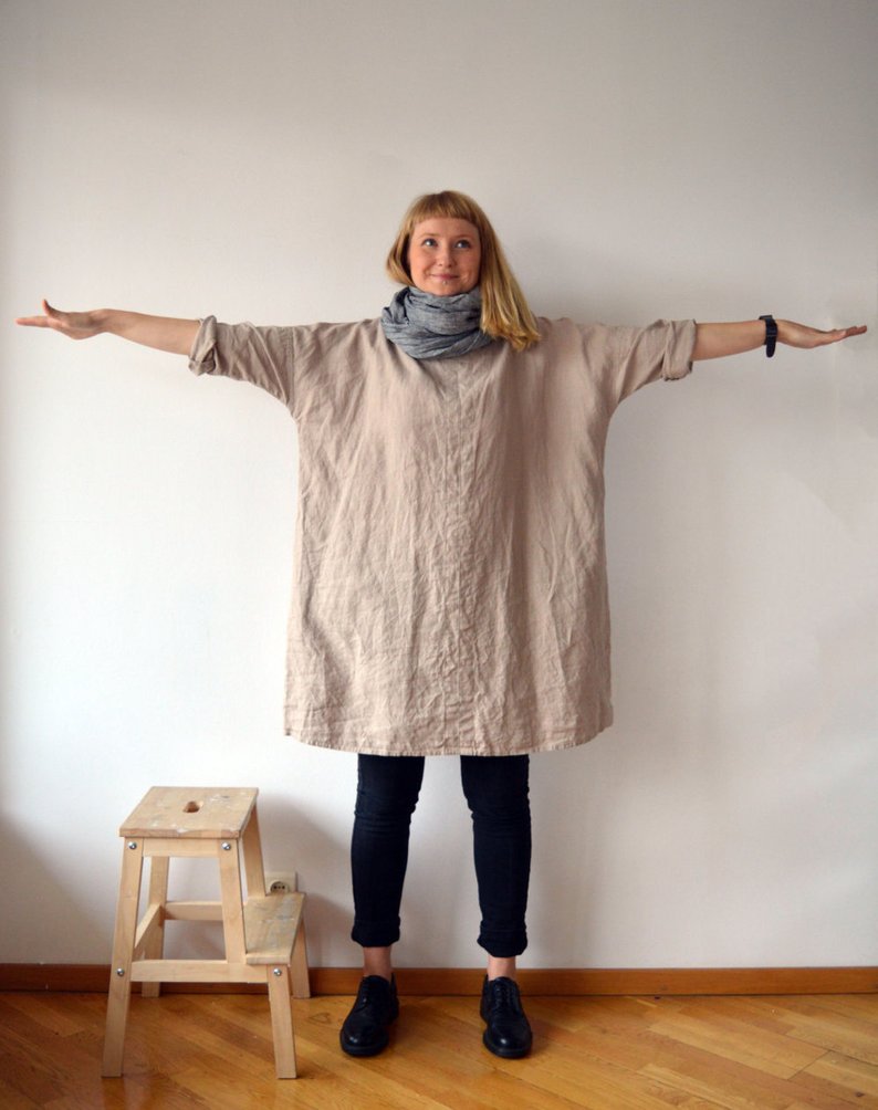 Linen Tunic Dress, Oversized Tunic, womens tunic, plus size tunic, linen tunics for women, linen dress with sleeves, natural linen dress