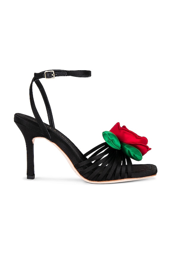 Loeffler Randall Rey Flower Sandal in Black, Red, & Emerald Satin | REVOLVE