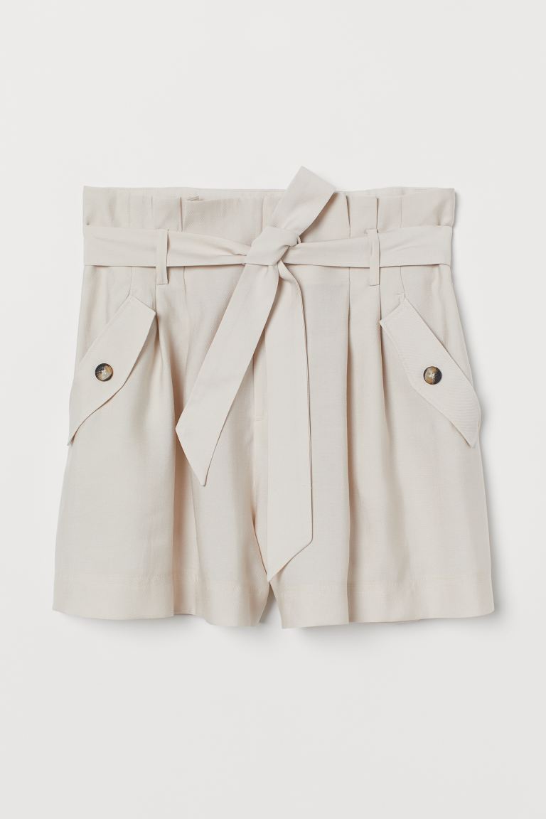 Lyocell Paper-bag Shorts - Beige - Ladies
