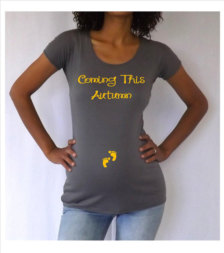 maternity Shirt/Tee "Coming This Autumn" with footprints Perfect to announce the birth of your child