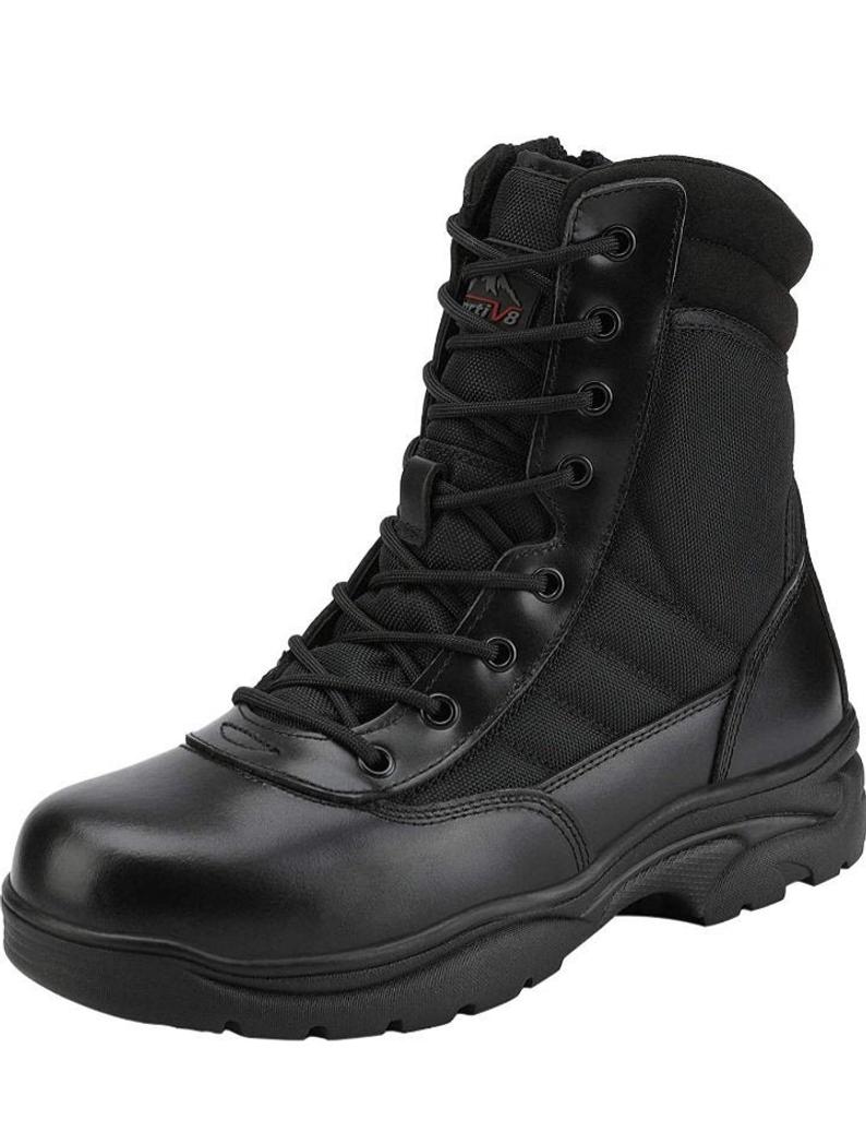 Men's Military Tactical Work Boots Side Zipper Black image 0