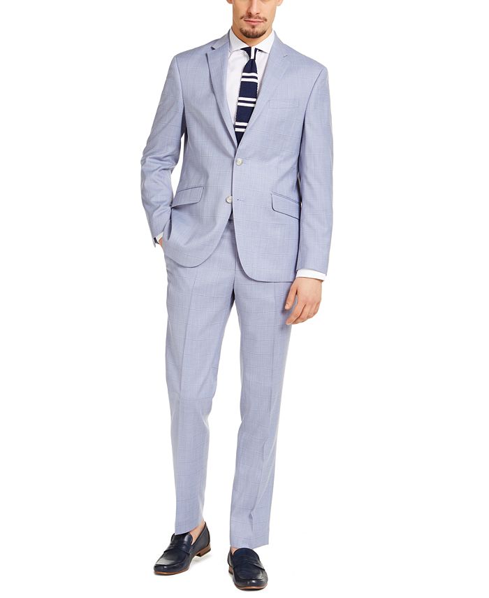 Men's Slim-Fit Techni-Cole Stretch Light Blue Windowpane Suit