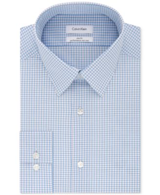 Men's STEEL Slim-Fit Non-Iron Performance Stretch Blue Check Dress Shirt