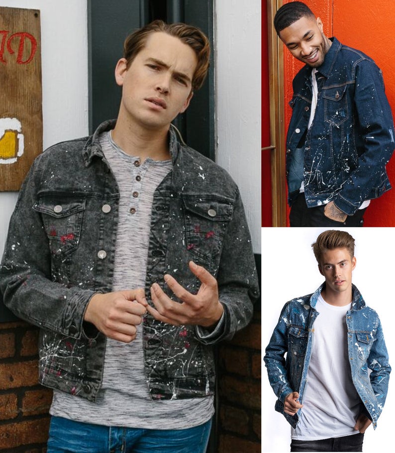 Mens Vintage 80's style denim jacket splatter paint jean image 0