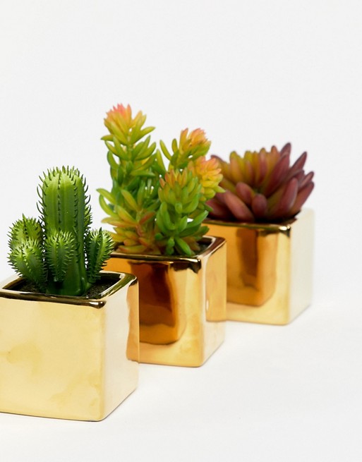 Mimo by Premier set of 3 mini succulents in gold ceramic pots