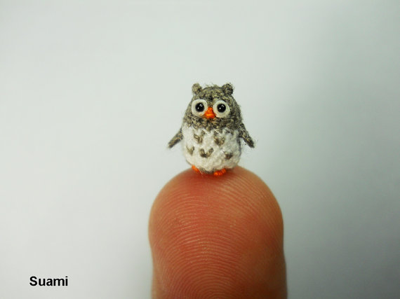 Miniature Crochet Owl - Micro Mini Amigurumi Gray Owl - Made To Order