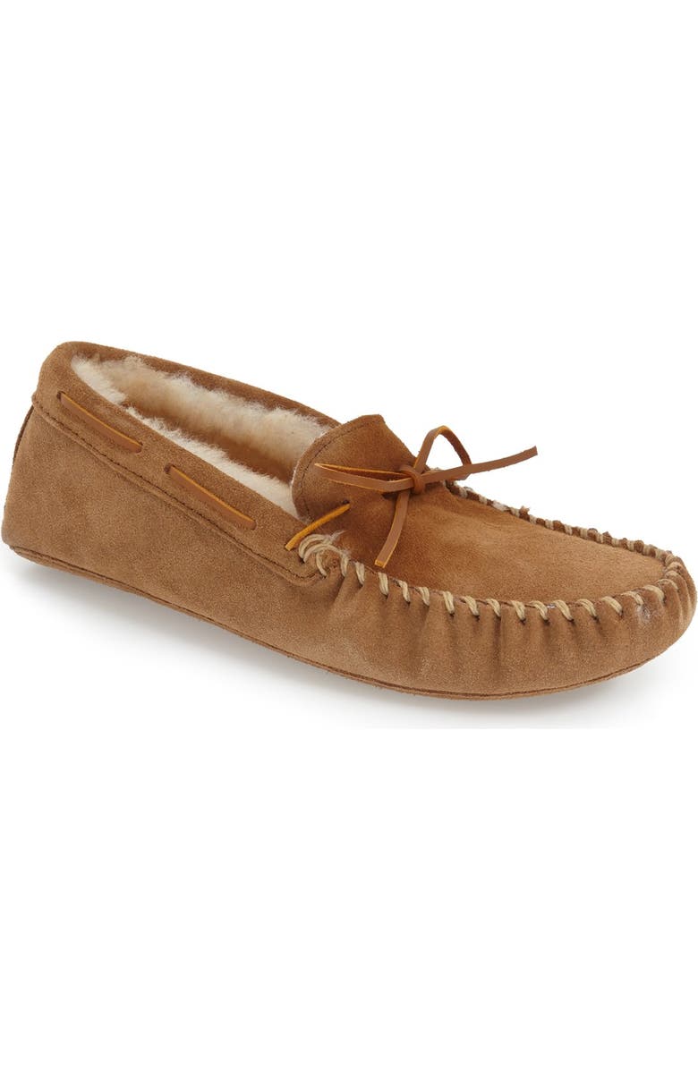 Minnetonka Genuine Shearling Lined Slipper, Main, color, Golden Tan