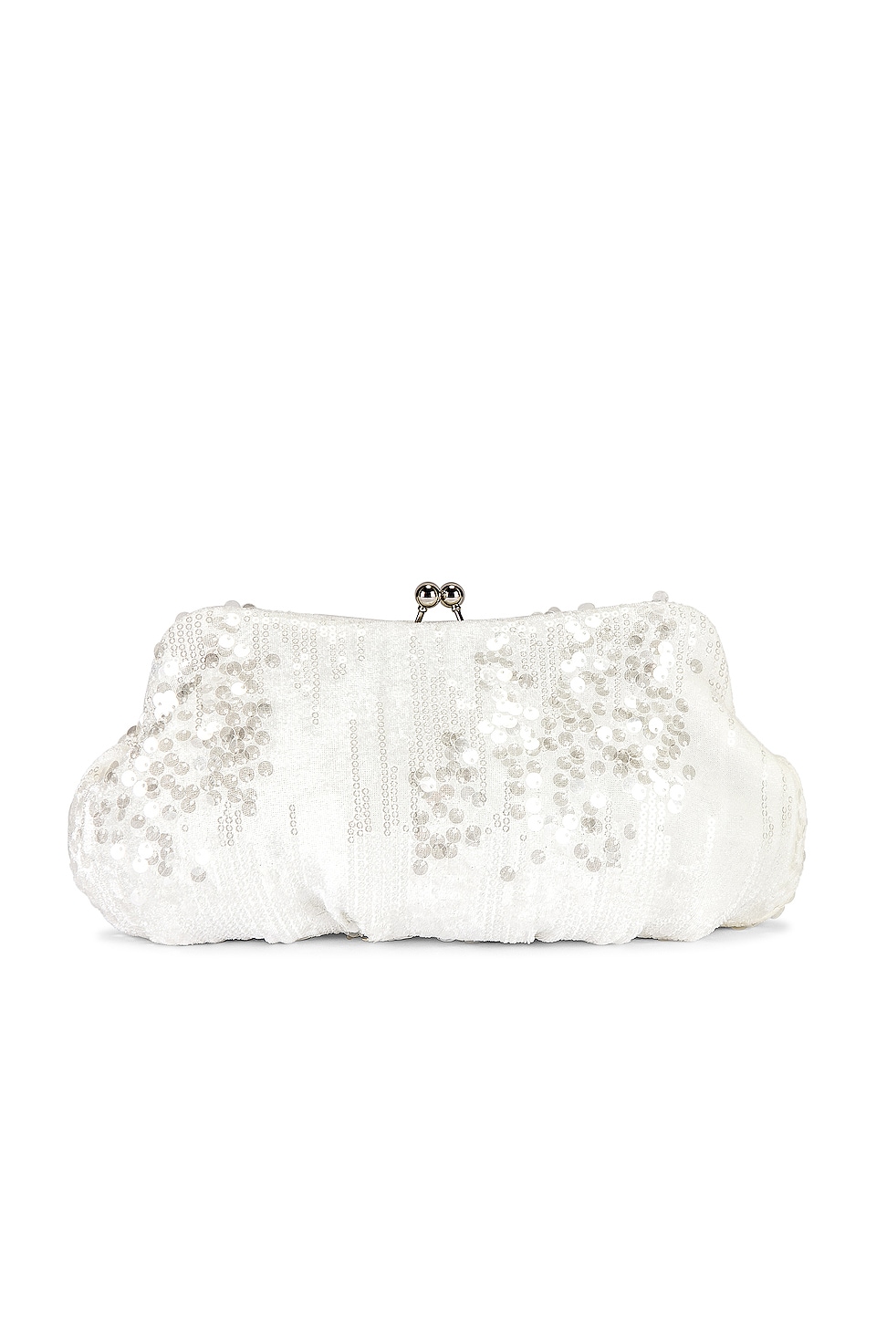 Misha Velvet and Sequin Embroidered Clutch in Ivory