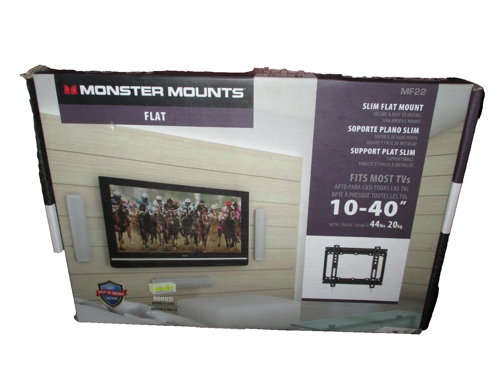 Monster Mounts Super Flat TV Wall Mount 10" – 40" TVs Monitors Ultra‑Slim