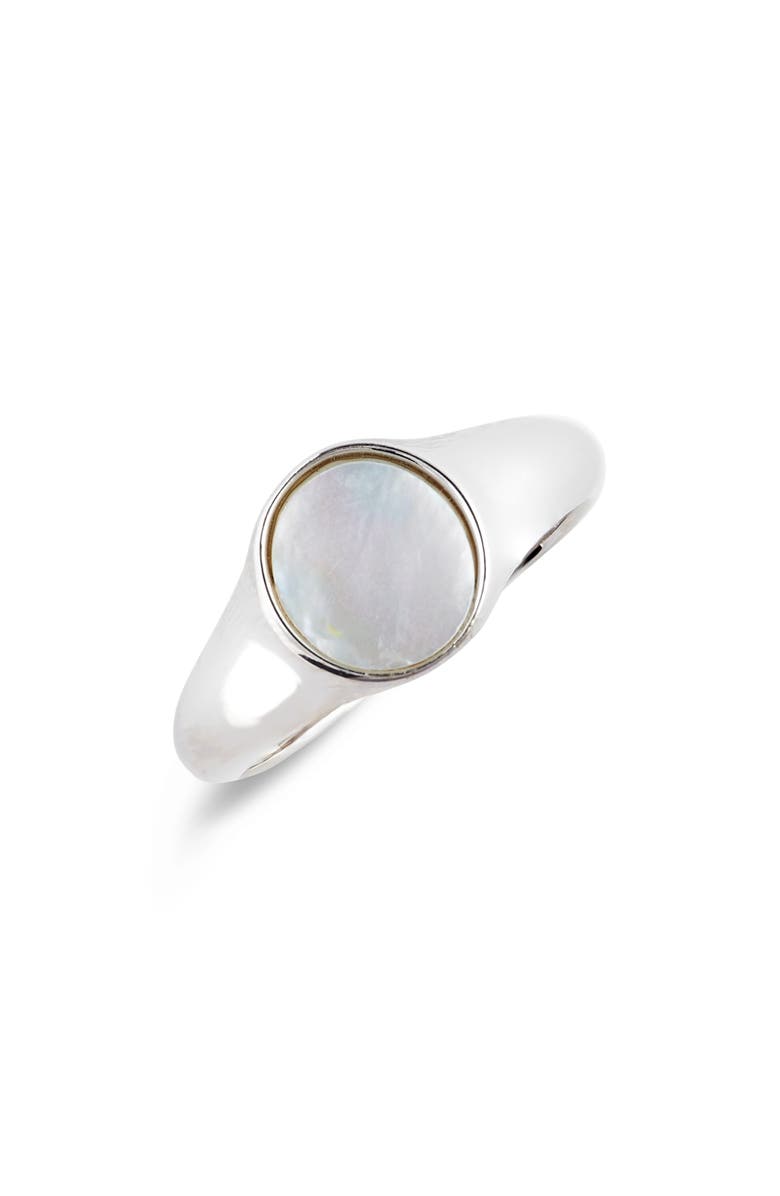 Mother of Pearl Signet Ring, Main, color, SILVER