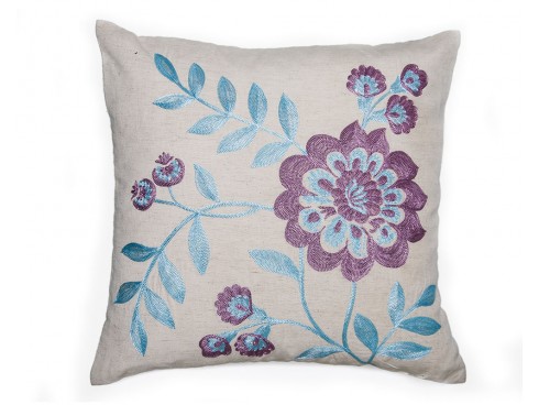 Multicoloured Crewel Embroidered Cotton Cushion Cover