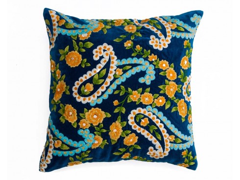 Multicoloured Wool Embroidered Cotton Velvet Cushion Cover