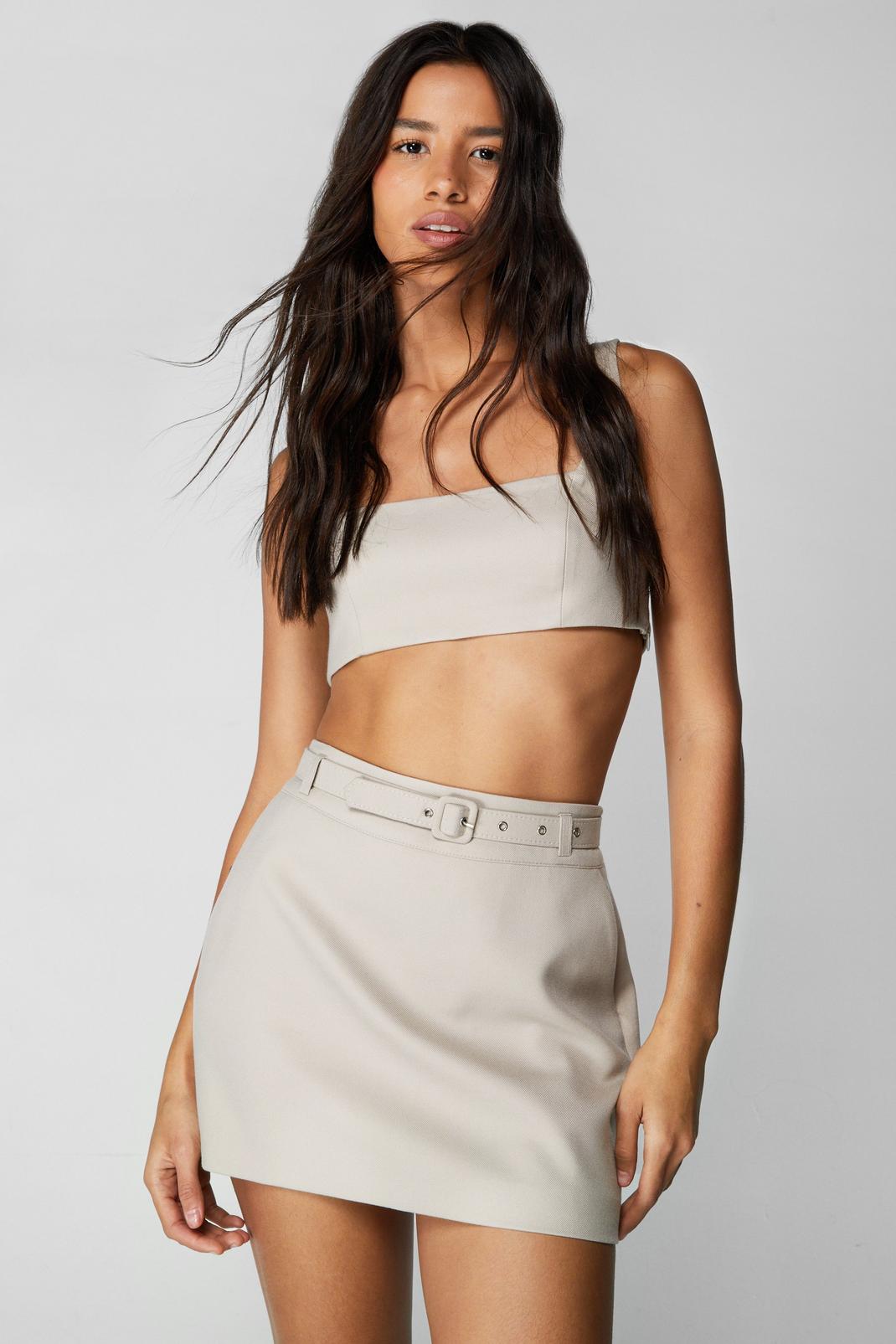 Neutral Premium Tailored Twill Mini Skirt