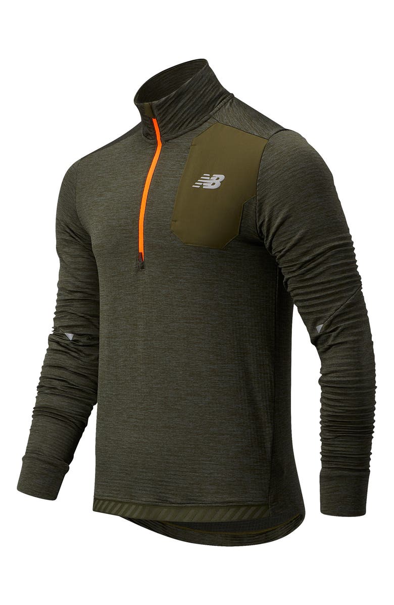 NEW BALANCE Run Heat Grid Men's Half Zip Performance Pullover, Main, color, OAK LEAF GREEN HEATHER
