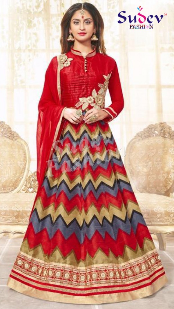 New Designer Latest Colllection Multicolor Bhagalpuri Printed Anarkali Suit