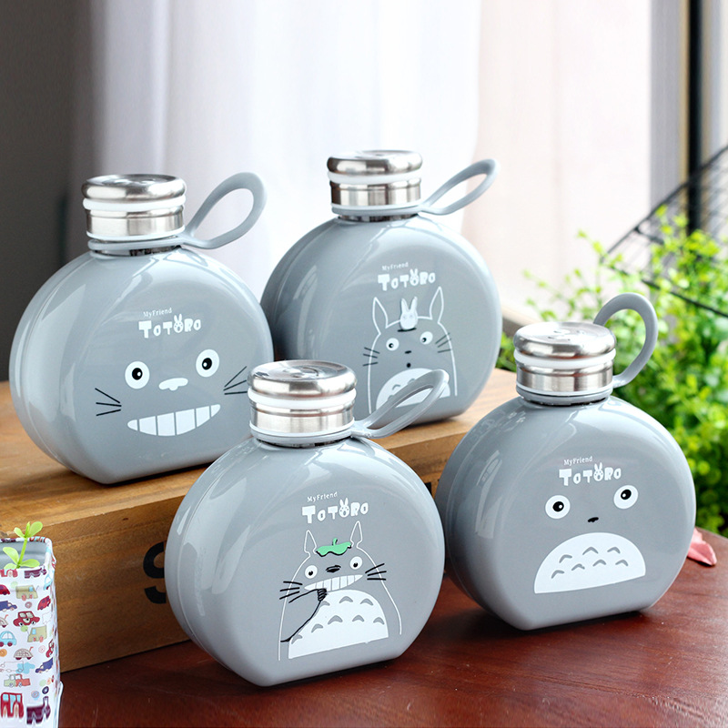 New Flat Paper Totoro Cartoon Water Bottle Cute Kettle Students coffee glass bottle Creative Portable Plastic Gifts