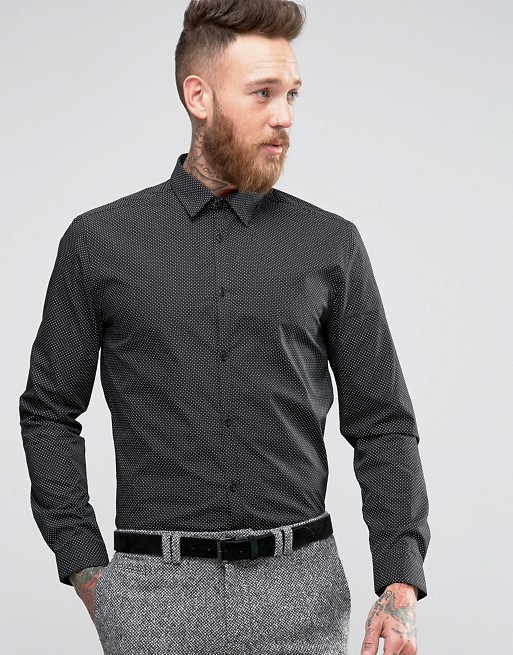 New Look Smart Shirt With Pin Dot Print In Black