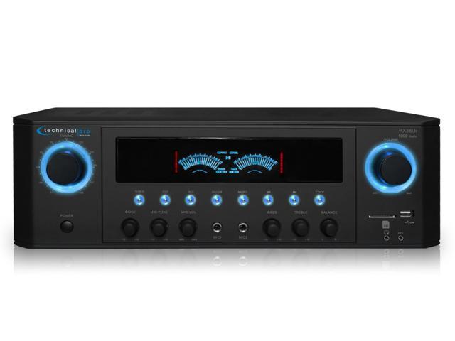 New Technical Pro 1000W Professional Audio Receiver with USB/SD Card Input, MP3 (AUX), 2 Mic Inputs, IPod/ IPhone Compatible, Recorder, & Wireless Remote